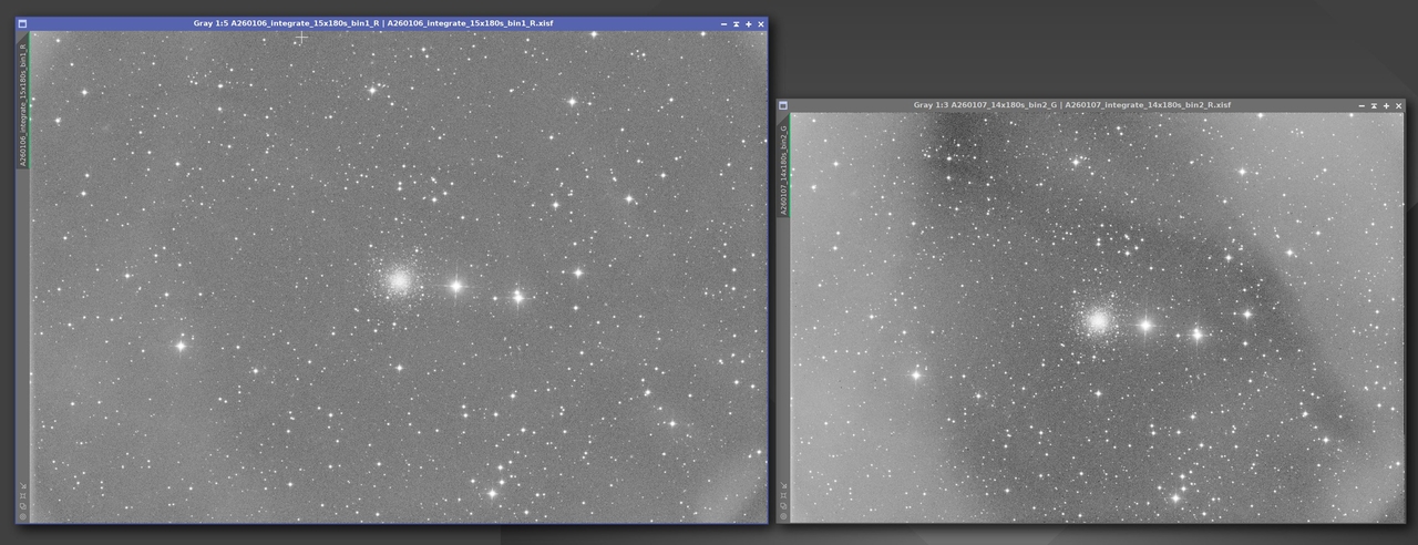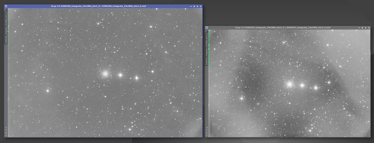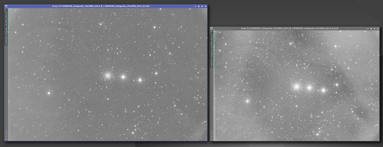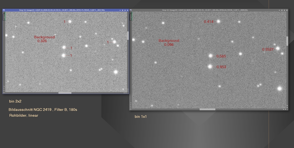 Unterschied der Bin Methoden bin 1x1 und bin 2x2 bei extremen Mondlicht